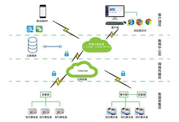 對(duì)于分布不同省、地市或同地市不同區(qū)域的連鎖商業(yè)、集團(tuán)、百貨、門店、物業(yè)、院校等業(yè)務(wù)分散,要求集中管理、線上支付,低額提醒、欠費(fèi)告警。但常規(guī)的本地插卡付費(fèi)、本地預(yù)付費(fèi)并不能完全滿足客戶管理需求,預(yù)付費(fèi)云平臺(tái)應(yīng)運(yùn)而生。AcrelCloud-3200水電預(yù)付費(fèi)云平臺(tái)無(wú)縫集成商業(yè)、物業(yè)公司、集團(tuán)企業(yè)、院校等分散布置的安科瑞DDSY/ADF系列電子式預(yù)付費(fèi)電能表、閥控智能水表等,提供微信、支付寶、銀聯(lián)等可選的在線支付方式,大大方便了用戶充值、圈存,提供預(yù)警和充值、退費(fèi)、電能消耗等記錄查詢,方便用戶和管理方的數(shù)據(jù)統(tǒng)計(jì)和財(cái)務(wù)分析,提供先交費(fèi)后使用的管控機(jī)制,大大降低了管理部門的收費(fèi)成本。